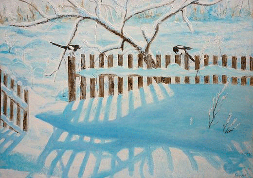 Сорочий след по снегу, как слова Пророчества, на рыхлую бумагу Ложится. Постарайся, улови В тех смутных знаках истинное знанье... Они о нас с тобой – и не о нас: Они о том, что лютой будет стужа. Павел Рыков «Шиповник»