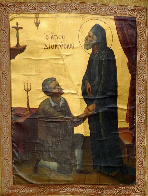 *Анафонитрия – монастырь на греческом острове Закинф, посвящённый Богоматери Анафонитрии (Возглашающей). В этот мононастрь вскоре после рукоположения в 1577 г. во епископа острова Эгин удалился Святитель Дионисий (Сигурос). Здесь он подвизался до своей блаженной кончины 30 декабря 1622 года. Несколько лет спустя его мощи были обретены нетленными и благоухающими, а в 1703 году Дионисий Эгинский был причислен к лику святых. 6 сентября празднуется перенесение его мощей. *Сигурос – князь Константин Сигурос. Брат святого Дионисия. Святитель оставил брату всё свое имущество, и князь Константин Сигурос, живя богато и счастливо, слыл влиятельным человеком в той местности. Однако у него были недоброжелатели – семья Мондиносов, тоже из Закинфа. Мондиносов раздражали богатство Сигуросов и воздаваемая им честь – они не признавали их первенства.