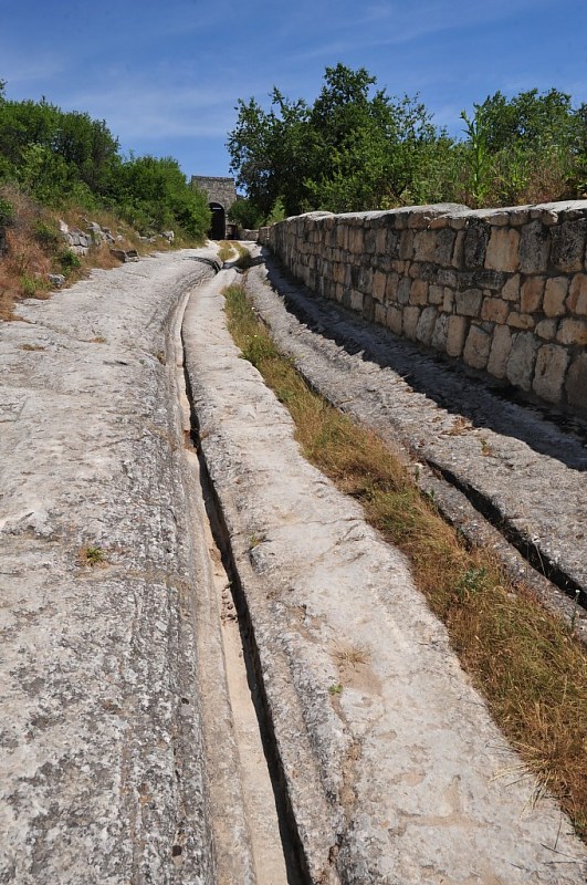 В узком проходе, ведущем к обитаемому жилью с посаженным огородом и развешанной одеждой, стояло стадо. Покорную овечью толпу возглавлял огромный круторогий бык с грозными глазами и воинственного нрава чёрный козел, рога которого были для козьей породы совершенно неестественны: чудовищные, широкие и плоские, с острыми концами (какая-то горная порода). Бык и козёл потихоньку приближались к нам с умным видом. Мы как-то странно быстро взлетели на высокую гладкую стену разрушенного дома. Если б это было у стены крепости, мы, наверное, так же легко и непринужденно прыгнули бы на тропинку над ущельем. Оказавшись наверху, мы обнаружили, что никуда не пройти: камни шатались и сыпались. Животные стояли прямо под нами и торжествовали победу. Из затруднительного положения нас выручила работница музея, обитавшая с семьей в крепости.