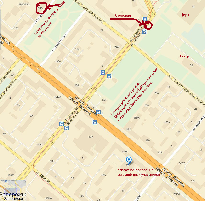 В течение дня поселение в общежитии: пр. Ленина, 145; остановка Универмаг «Украина», налево от универмага, под аркой возле кинотеатра Довженко. Запорожский областной институт педагогического последипломного образования, 2-й корпус; тел. вахтёра: (061)233-11-23; заведующая Зинаида Ермолаевна.