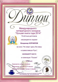 Кроме того, участвуя в Берлине в Международном конкурсе «Лучшая книга–2014», Владимир стал лауреатом за книгу избранных стихотворений «Не живут здесь без веры в Православную Русь», заняв 2-е место.