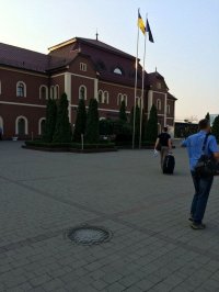 А в Ужгороде на привокзальной площади разбита огромная зелёная лужайка, на которой растут прекрасные ели. Высажены цветы. Ковром постелена газонная трава. Вокруг огромные вековые деревья. И всё такое чистенькое. Нигде нет брошенного окурка. На дороге и тротуарах листвы нет. А ведь машин в городе тоже много. И на вокзале они есть. Но бросается в глаза именно этот газон и чистота, а не машины. И никакого шлагбаума. Не нашли, видать, такого умного человека, как в Запорожье. Я ещё подумала, что денег Киеву выделяется больше, чем Ужгороду. Но дворники в Ужгороде есть, а в Киеве их с огнём не найдёшь.